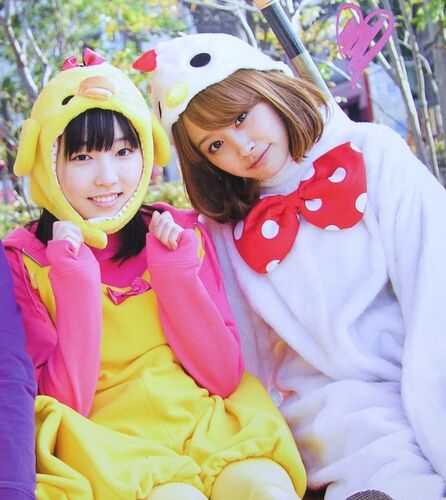 ちょこっとバカを歌い終わった時、さきちぃがゆうかりんに近寄って ゆうかりんの口元に指をやって「真っ黒になってるよ」とさきちぃ。 ちょっと恥ずかしそうなゆうかりんが可愛いね。