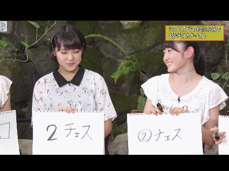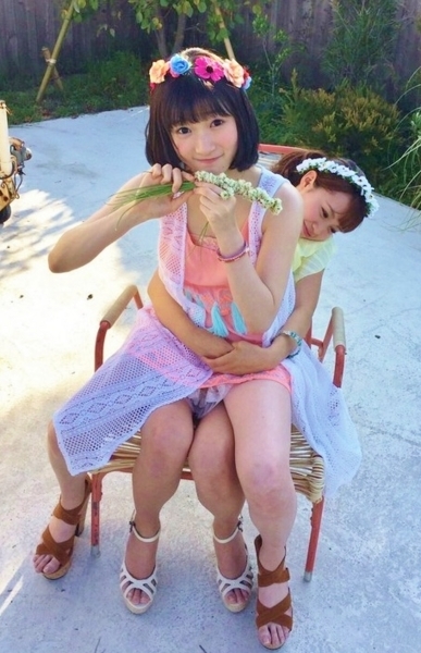 関根梓さんのスカートの中を覗き込む、佐保明梨さん。ただの変態やん。