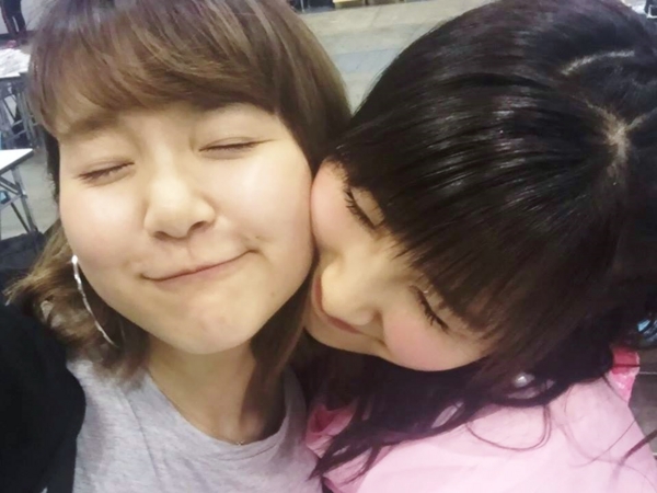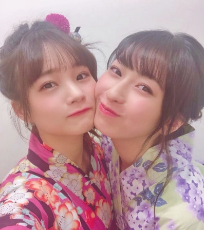 「あゅみんとはるなんがほっぺにちゅーしてきました。( °д°)焦